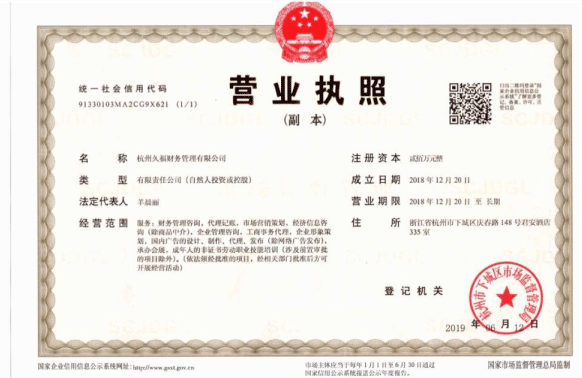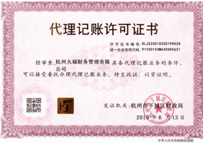 杭州久福財(cái)務(wù)管理有限公司是經(jīng)杭州市工商行政管理局及杭州市財(cái)政局審批具有專業(yè)法定資格從事杭州公司、內(nèi)資公司、香港公司、海外公司、自貿(mào)區(qū)公司注冊代辦等服務(wù),或許你是第一次創(chuàng)業(yè),對于注冊公司工商登記需要的材料、注冊公司流程等方面都不熟悉,甚至不了解。若自己親自去跑腿一切,可以說是一項(xiàng)繁瑣和吃力的工作。因而,選擇一家專業(yè)的注冊代理公司是十分必要,也是非常重要的。杭州是創(chuàng)新之城,也是創(chuàng)業(yè)之城,如果您有一顆創(chuàng)業(yè)的心,讓我們幫助你完成創(chuàng)業(yè)的第一步,共同開啟璀璨人生!